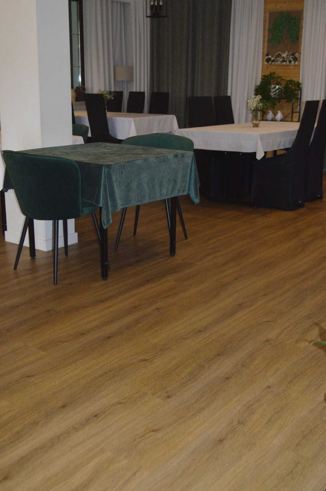 W strefach wspólnych, takich jak lobby, recepcja, sale konferencyjne czy restauracje, coraz częściej montujemy panele winylowe LVT do hoteli. Są to podłogi, które imitują drewno lub kamień, oferując przy tym znacznie lepszą odporność na ścieranie, wilgoć i zabrudzenia. LVT to doskonałe rozwiązanie dla inwestorów, którzy szukają kompromisu między trwałością podłogi obiektowej a elegancją wystroju wnętrza. Co ważne, panele winylowe LVT nadają się do montażu na ogrzewanie podłogowe, co zwiększa komfort w pokojach typu premium.